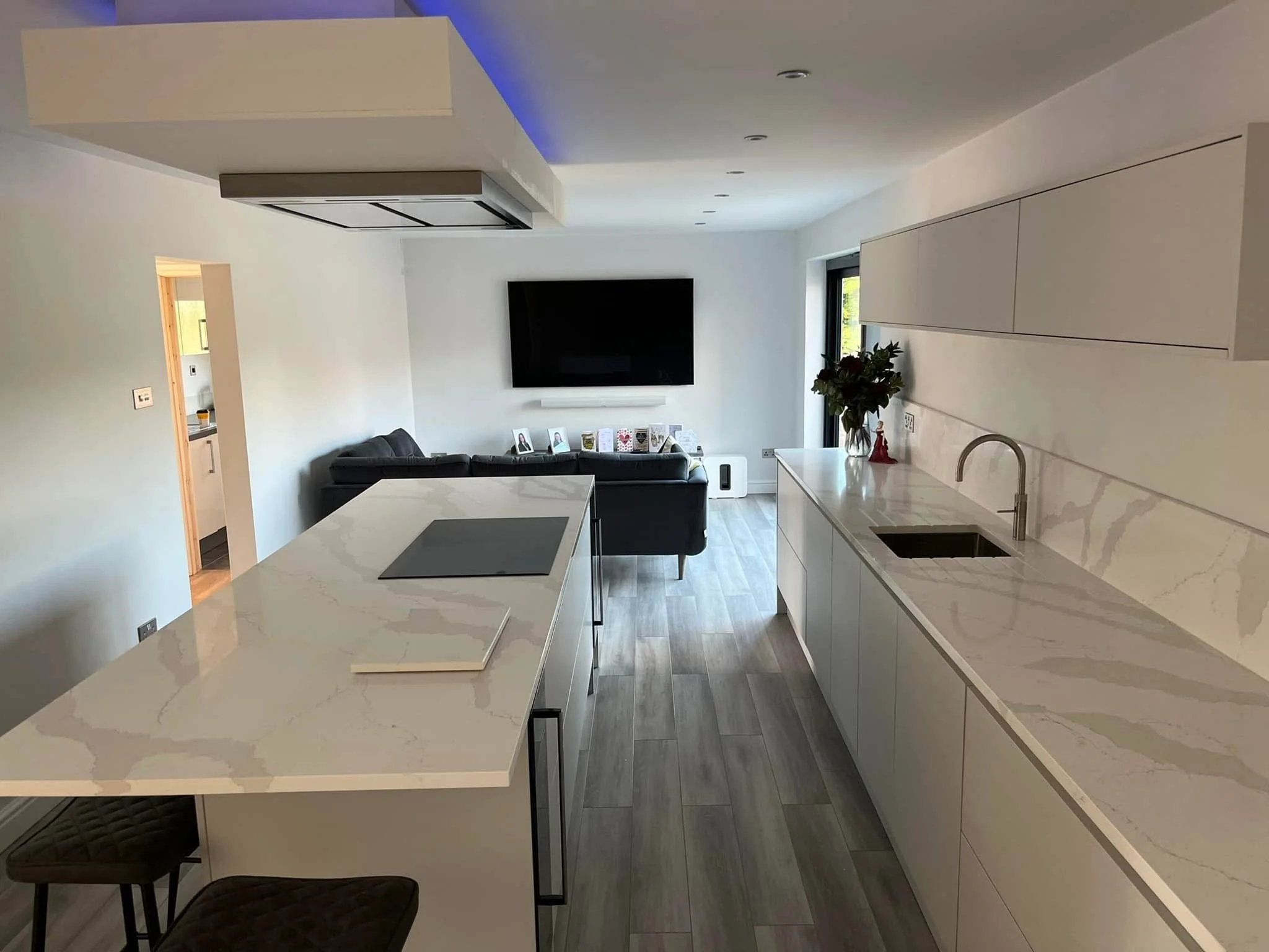 This was a large-scale project involving building regulations, as it required the removal of a load-bearing wall to create an open-plan kitchen and dining area. We coordinated the structural calculations for the necessary steel beam and supplied the materials. Afterward, we installed a new kitchen, along with new flooring throughout the space.